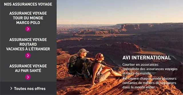 Née du partenariat entre AVI International et Le Routard, cette assurance voyage complète offre toutes les prestations d’assistance et d’assurance indispensables lors d’un voyage à l’étranger : courte ou longue durée, vacances ou volontariat, avec ou sans franchise, tarifs à la carte pour les sports d’aventure.