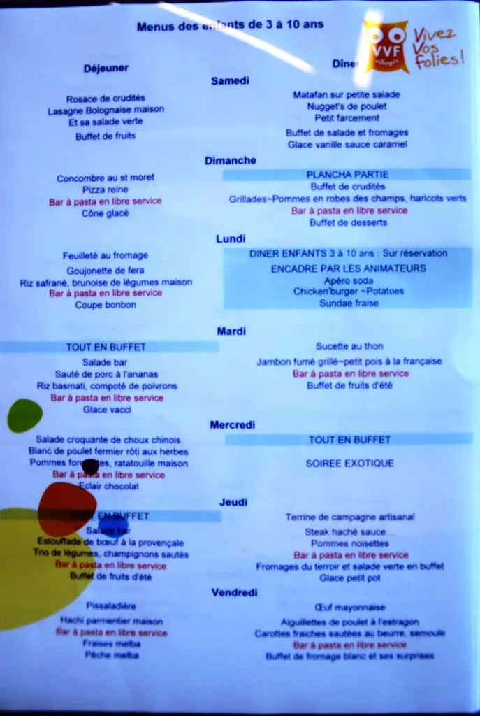 Bonus : exemple de menus enfants du VVF d’Evian !