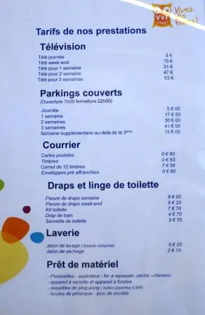 Bonus : le plan du village et le tarif des prestations au VVF d’Evian